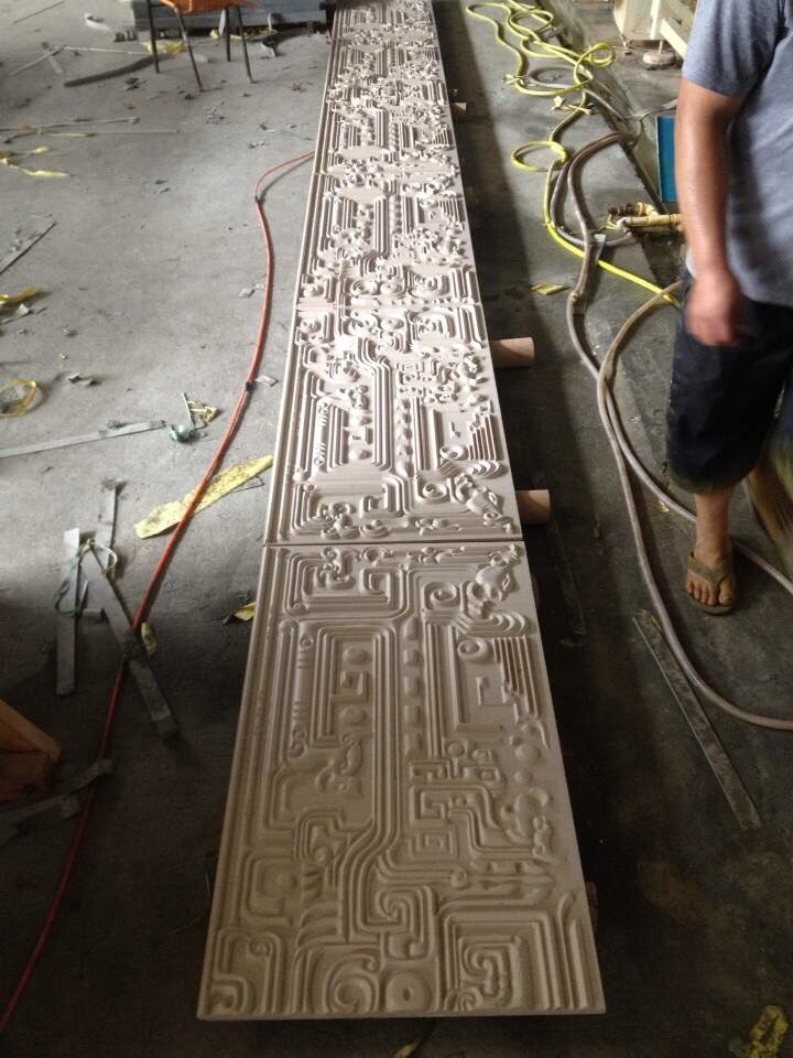 本公司位于石材之鄉(xiāng)一南安水頭。集自動(dòng)噴砂(防荔枝面)數(shù)控雕刻、手工雕刻、石材噴砂工藝、高壓水沖、電視背景、異形線條等加工。