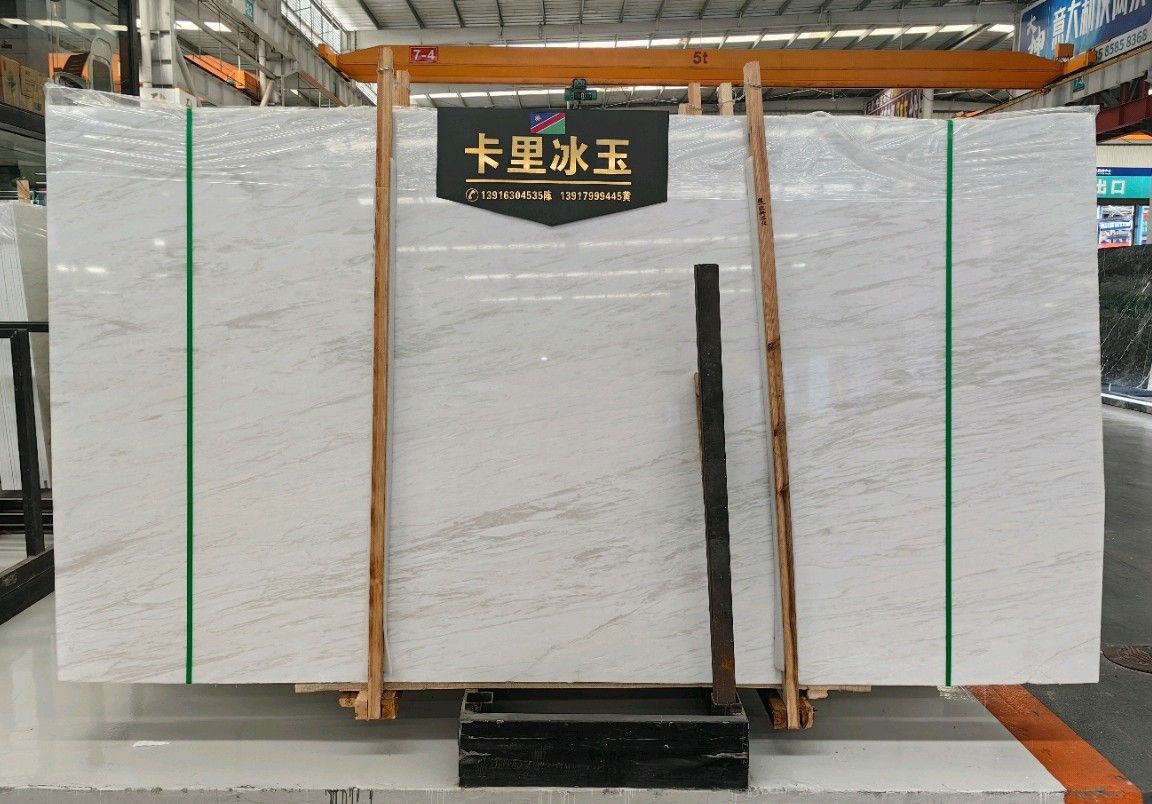 批發(fā)納米比亞卡里冰玉 皇家白玉 芬迪白 各種大理石荒料、大板