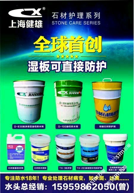 上海健雄建材有限公司成立于1998年,是上海一家從事石材養(yǎng)護(hù)方面研究的專業(yè)機(jī)構(gòu),致力于新型有機(jī)硅表面活性材料的開發(fā)和合成,達(dá)到有機(jī)硅的防護(hù)效果!本公司針對石材品種打造各種石材養(yǎng)護(hù)劑和石材病變處理劑化學(xué)品,能適應(yīng)于客戶高質(zhì)量的要求,以質(zhì)量為核心的理念服務(wù)于各種石材企業(yè)!