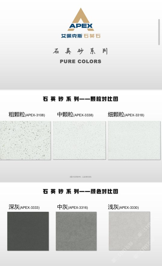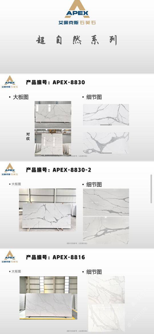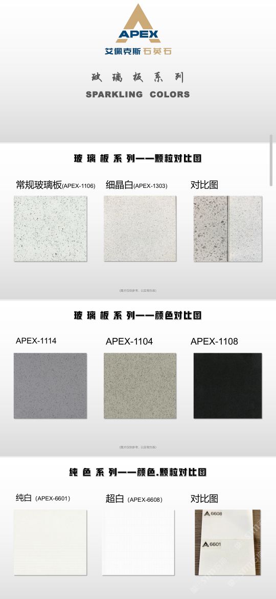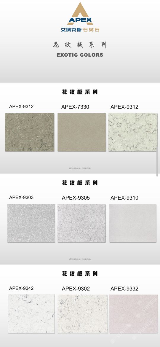 艾佩克斯秉承“精益求精”的開(kāi)發(fā)理念,在人造石生產(chǎn)工藝上大膽突破,研發(fā)出更具特色的新石代石英石,色彩自然豐富,具有天然石材的質(zhì)感和美麗的表面光澤。產(chǎn)品具有刮不花、不污染、用不舊、燃不著、無(wú)輻射等五大特點(diǎn),可以廣泛用于公共建筑酒店、餐廳、銀行、醫(yī)院、展覽館、實(shí)驗(yàn)室等和家庭裝修廚房臺(tái)面、洗臉臺(tái)、廚衛(wèi)墻面、餐桌、茶幾、窗臺(tái)、門套等領(lǐng)域,是一種無(wú)放射污染、可重復(fù)利用環(huán)保、綠色新型建筑室內(nèi)裝飾材料。是的裝飾裝修材料。