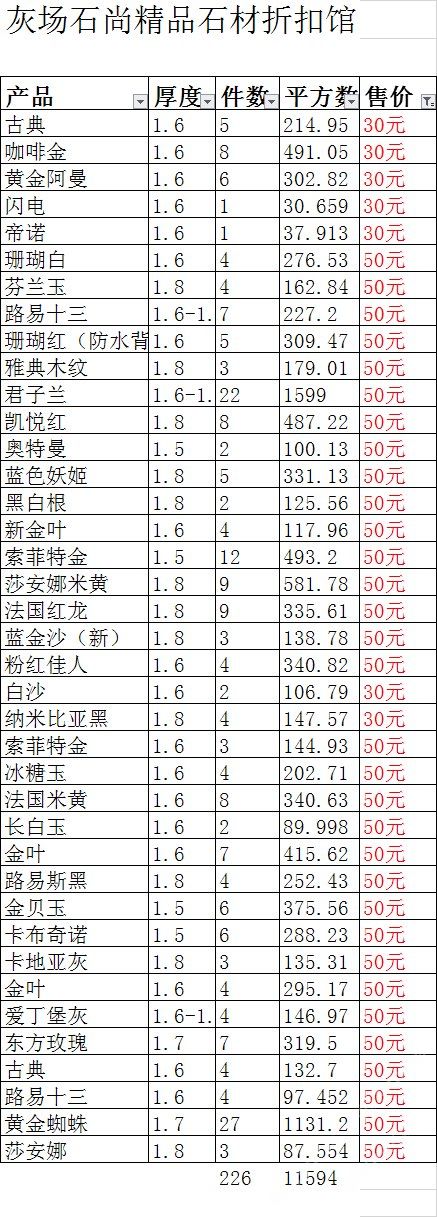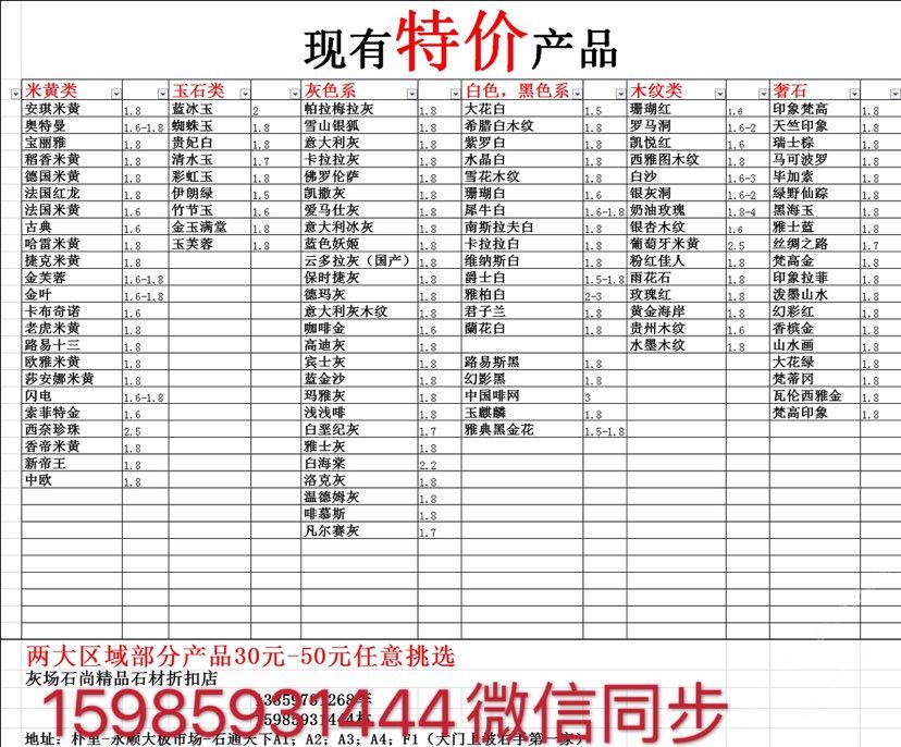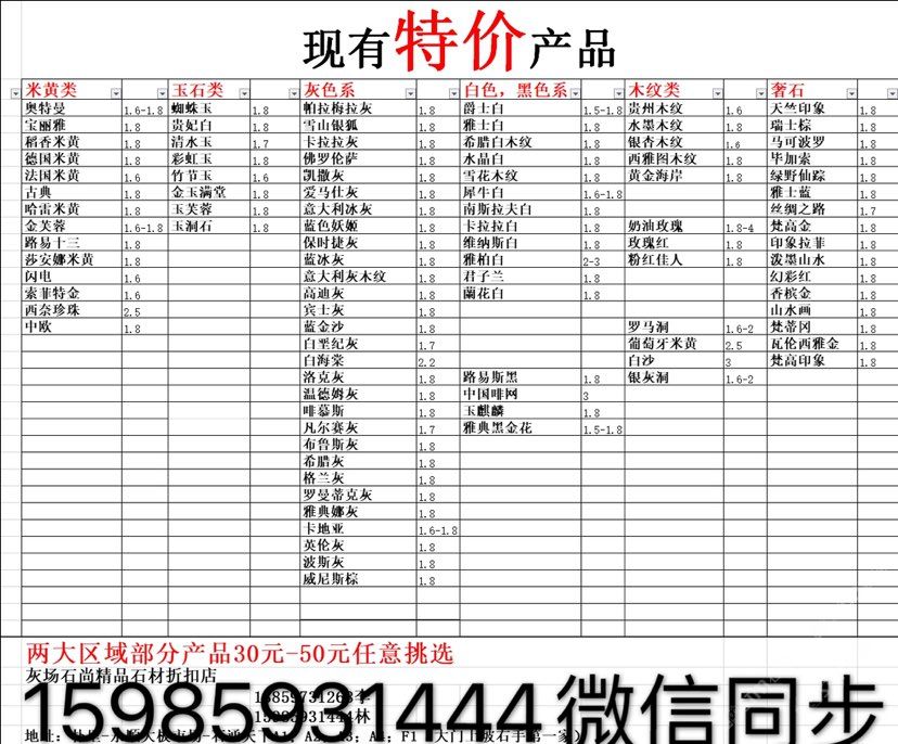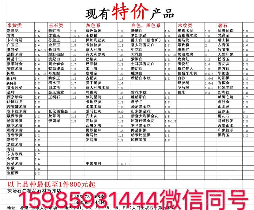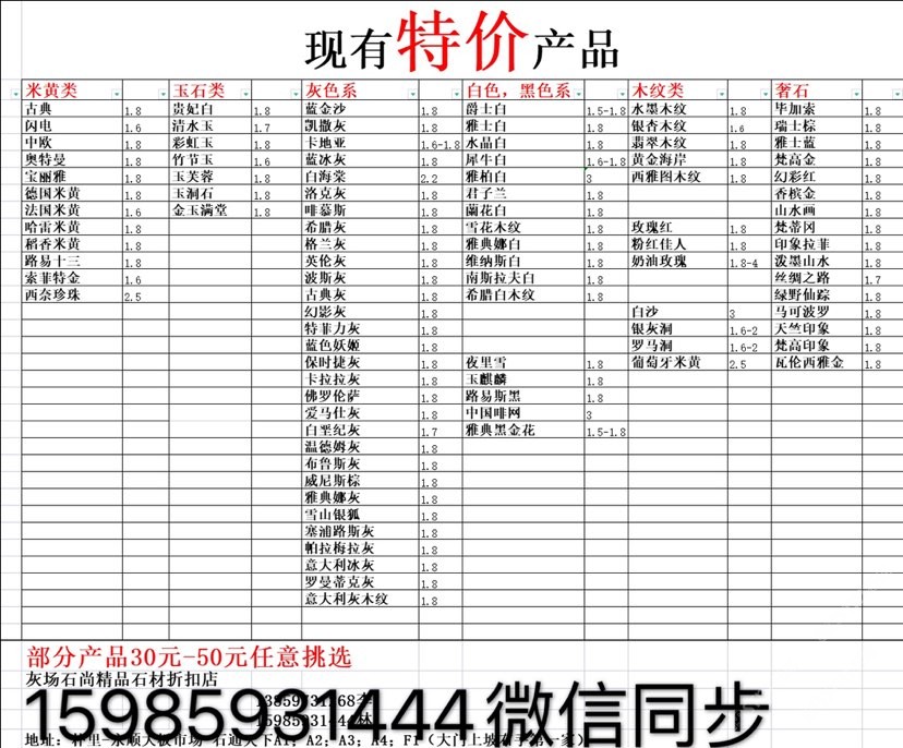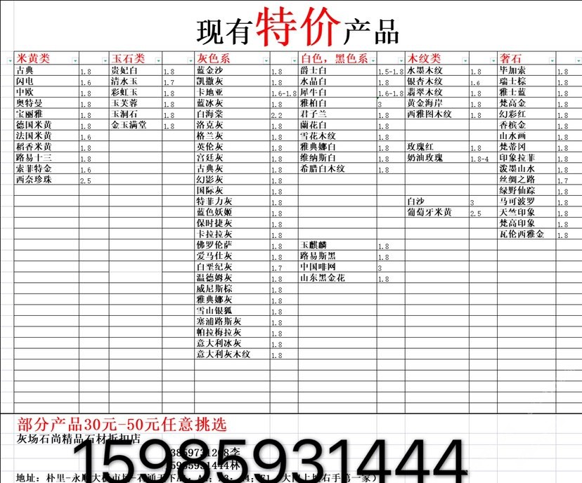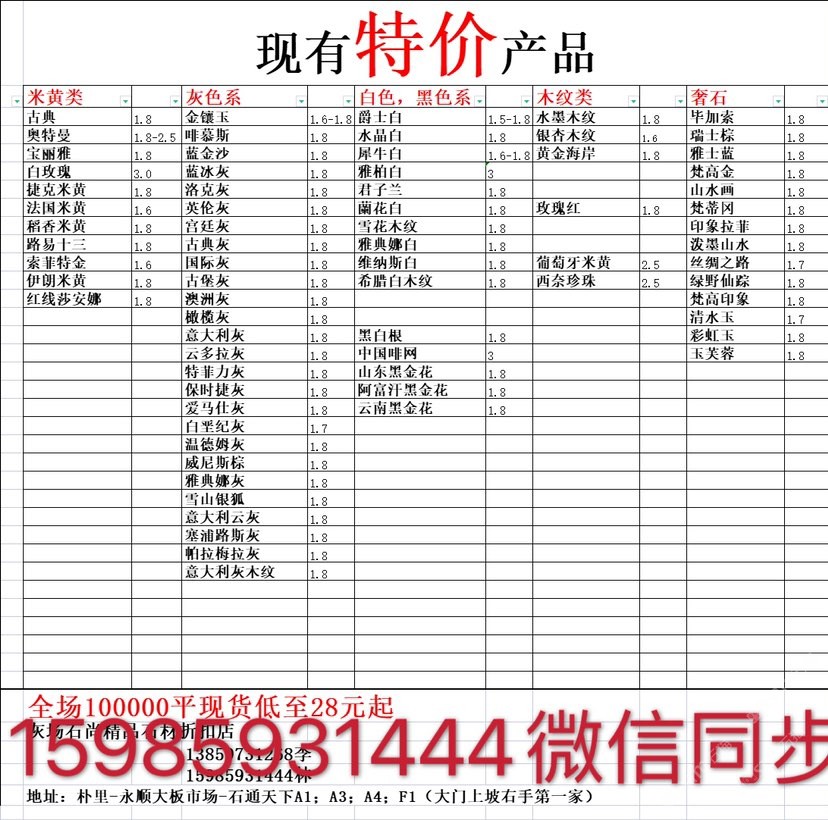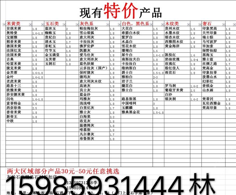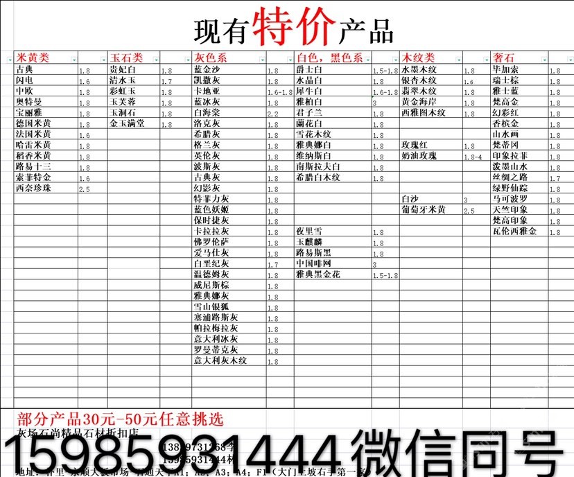 現有100000平大板特價(百來個品種),低至30元起