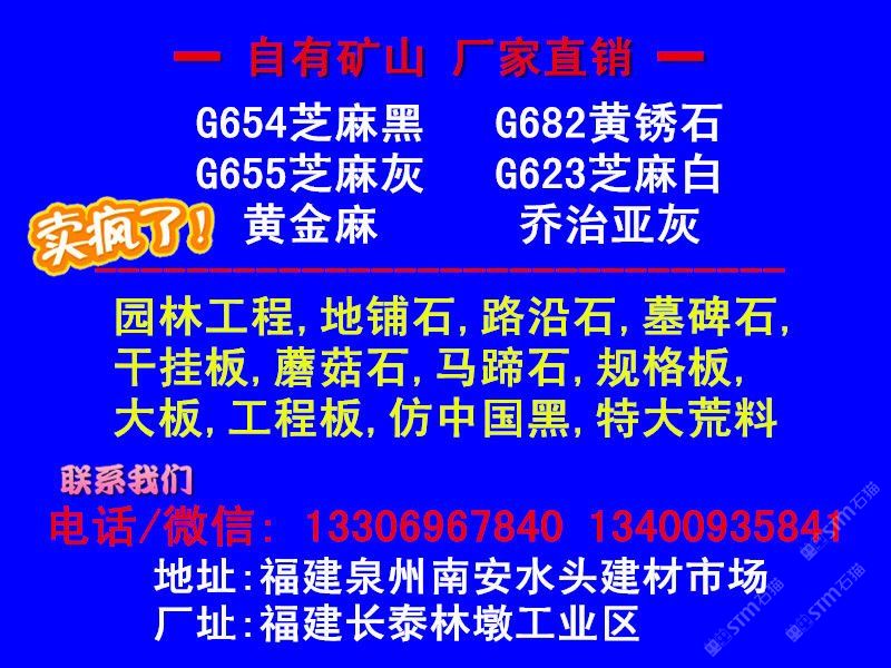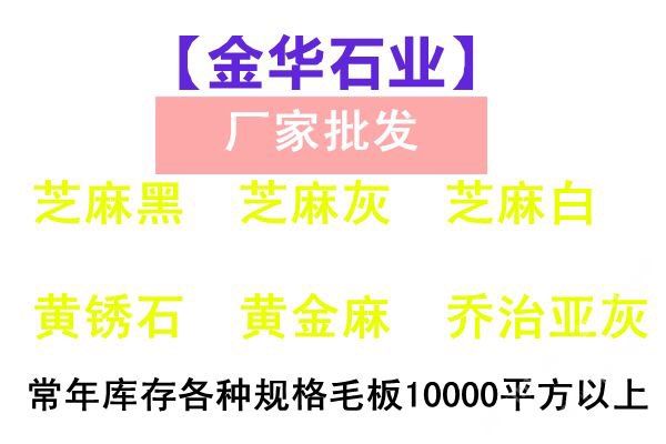 【金華石業(yè)】專門立足于本地豐富的自然資源,擁有成套先進(jìn)的石材設(shè)備,專業(yè)石材加工技術(shù)人員,掌握先進(jìn)的石材加工技術(shù),制定了一整套嚴(yán)格的質(zhì)量控制體系,品質(zhì)管理嚴(yán)格,專業(yè)生產(chǎn)本地石材:G654(芝麻黑),G655(芝麻灰),G682(黃銹石),G603(芝麻白),喬治亞灰,蝦紅、虎皮黃、毛光板,火燒板,踏步板,盲道板,機(jī)刨板,荔枝面,路沿石,蘑菇石,花壇石,花崗巖自然面,建筑用塊石,大型門牌石,墓碑石和橋柱橋欄,圓柱,等各種板材和弧形異型加工。