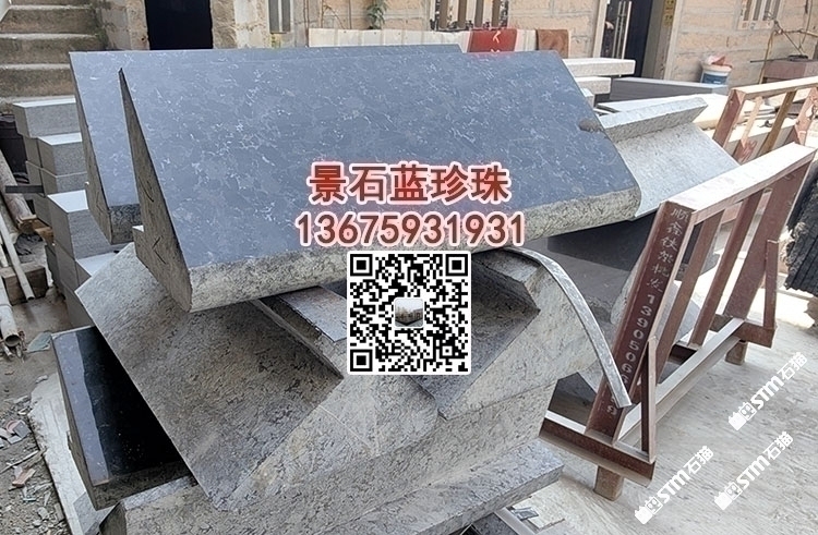 幻影藍幕墻干掛板水池水景石材定制印度黑金沙藍珍珠