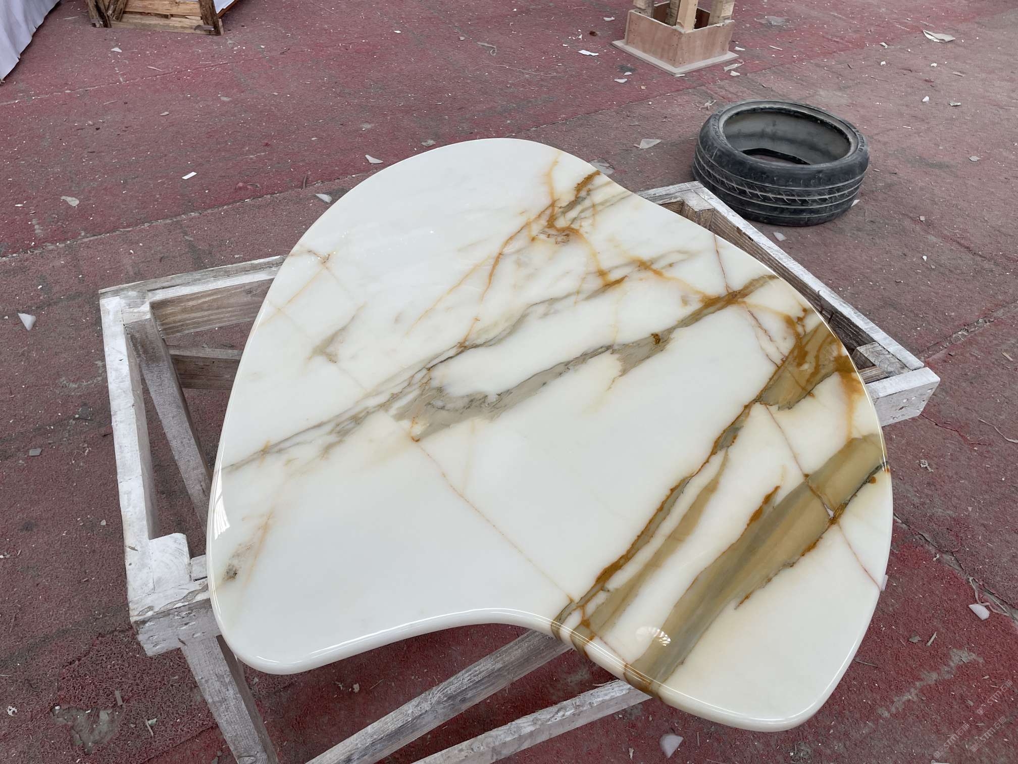 上海別墅魚(yú)肚金天然大理石導(dǎo)臺(tái)定制案例