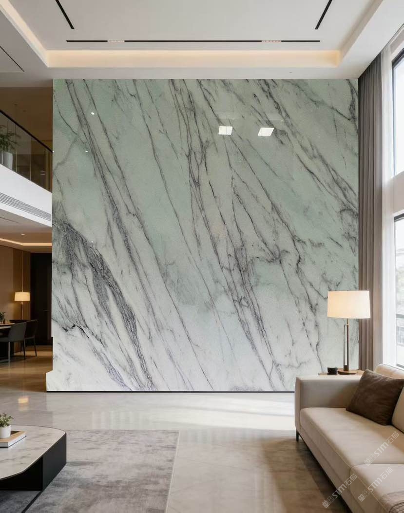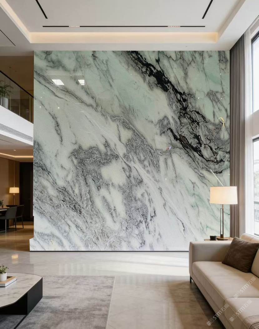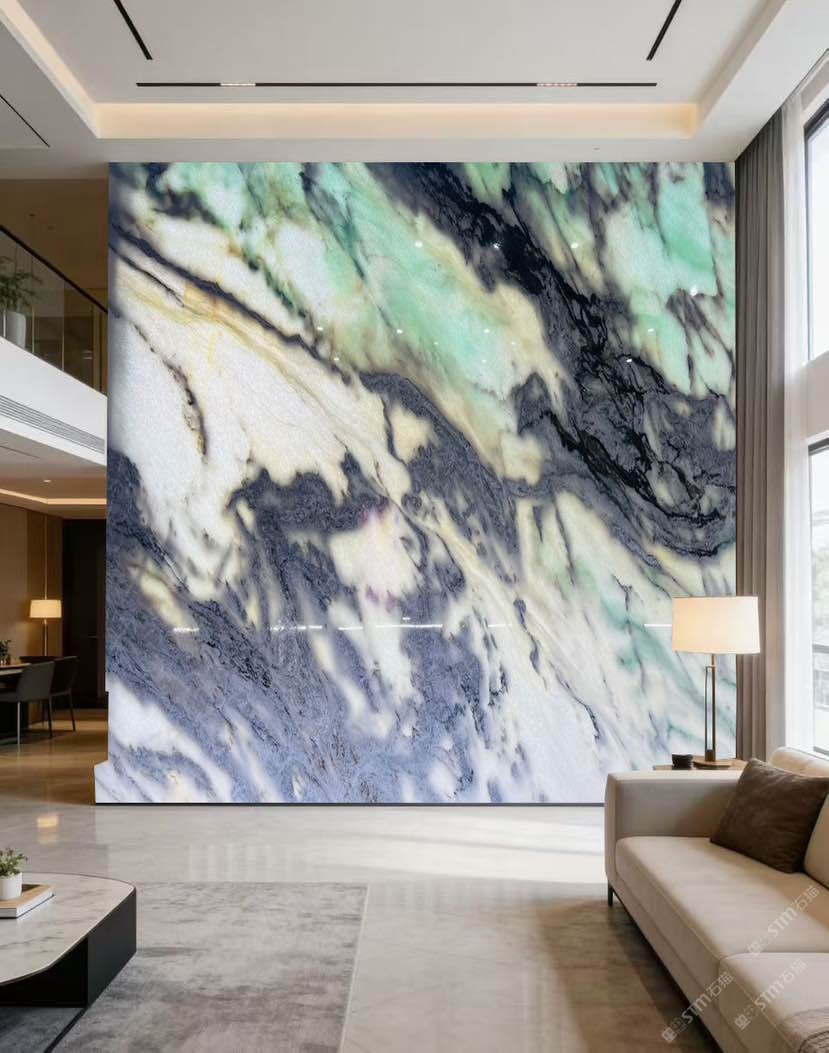 以白綠有基底,山水紋理,搭配燈光效果更好