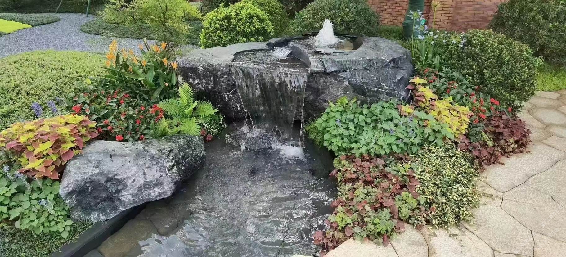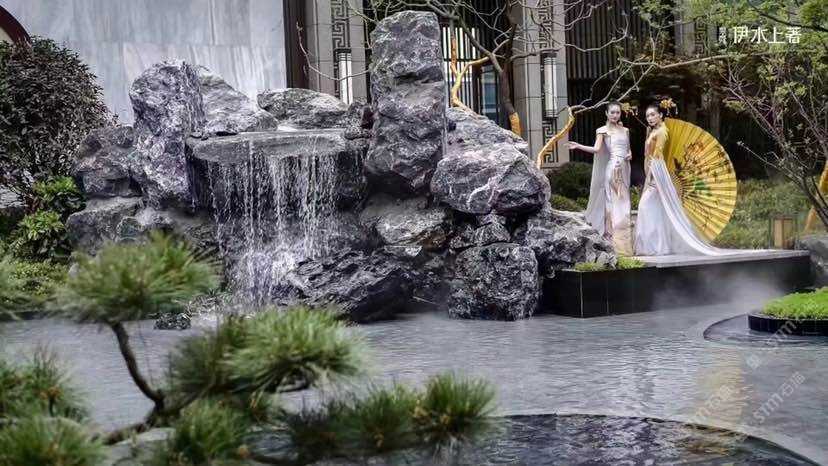 黑山石地產(chǎn)應用,流水生財,黑色永恒經(jīng)典搭配