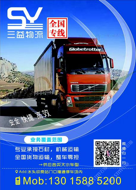 發(fā)布信息: 水頭三益物流 可開發(fā)票,代開各類保險業(yè)務(wù)! 專業(yè)承接石材,機械運輸! 供應(yīng)各類大小車型! 13015885200(小陸)