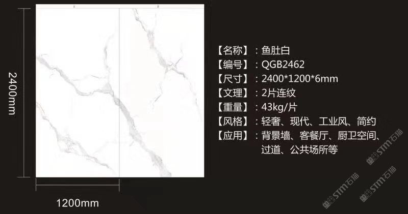 規(guī)格: 2400*1200*6mm/12mm 3200*1600*6mm/12mm 2600*800*15mm 花紋: 魚(yú)肚白/雪花白/爵士白/水泥灰/勞倫黑金