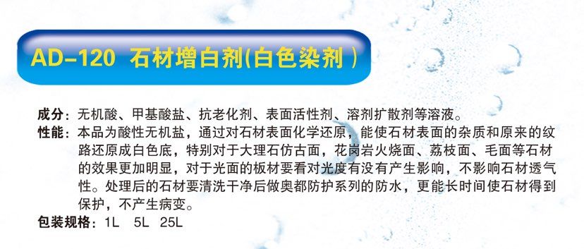 發(fā)布信息: AD-120--石材增白劑(白色染劑)