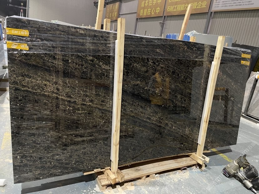 無(wú)染色,純天然,光度好的黑色帶金花大理石,適用于墻面,地面,臺(tái)階,洗手間,臺(tái)面等。