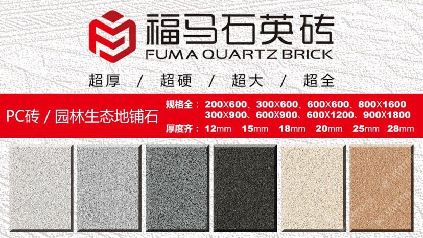 發(fā)布信息: ??福馬石英磚 ? 生態(tài)地鋪石創(chuàng)意源自于天然石材,品質(zhì)勝于天然石材。 以天然石粉、高嶺土、石英砂、長(zhǎng)石等原料,經(jīng)研磨、混合制漿、干燥噴粉、壓制、多層施釉、燒結(jié),1250℃高溫使原材料產(chǎn)生熔融狀態(tài),冷卻后重組結(jié)晶。這使得生態(tài)石更加密實(shí)和堅(jiān)硬。 ? 1、全瓷化通體材質(zhì),高瓷化度,低吸水率,使產(chǎn)品防滑、耐磨、高抗折、高耐污,清潔方便性。 ? 2、依據(jù)天然石材的表面,開具特殊模具表面,使生態(tài)地鋪石具有石材質(zhì)感,仿真度更高,更防滑,不同于普通廣場(chǎng)磚 ? 3、產(chǎn)品表面經(jīng)7道以上特殊釉水工藝處理,使產(chǎn)品具有耐磨、防滑,高耐污,清潔方便的特點(diǎn)。 ? 4、產(chǎn)品顏色豐富(量大可定制),尺寸多樣。能夠配合設(shè)計(jì)師獨(dú)特創(chuàng)意,實(shí)現(xiàn)不同環(huán)境和個(gè)性所要求的裝飾風(fēng)格。 ? 5、耐久性好,適合場(chǎng)所廣。產(chǎn)品具有耐磨抗壓、防滑耐污、耐酸堿、抗凍、不褪色的特點(diǎn)。可用于大型貨車可通行的,市政工程,小區(qū)景觀路面,休閑廣場(chǎng),園林綠化,公園公共停車場(chǎng)等。 ? 6、后期養(yǎng)護(hù)、修補(bǔ)簡(jiǎn)單。產(chǎn)品顏色可控,不同批次產(chǎn)品色差控制在95%左右,且常規(guī)顏色產(chǎn)品,長(zhǎng)期備有庫(kù)存。