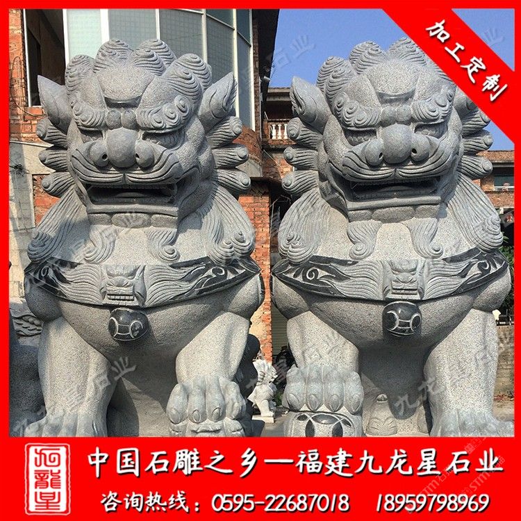發(fā)布信息: 九龍星石業(yè)是石雕獅子廠家,從事石雕獅子加工制作20多年,石雕獅子款式多樣,價(jià)格合理。石雕獅子材質(zhì)可以為花崗巖、大理石、漢白玉、青石等等,望廣大新老客戶前來(lái)參觀考察和選購(gòu)。 石雕獅子顧名思義就是有石材雕刻而成的石雕獅子,石刻石獅子寓意很多,深受人們喜歡,民間流傳石雕獅子的寓意都很吉祥。 傳統(tǒng)石雕獅子作為中國(guó)傳統(tǒng)建筑中經(jīng)常使用的一種裝飾物,人們喜愛(ài)將它擺放在家門口,有的獨(dú)立的獅子把門,有的放在門枕石上,有的與石鼓結(jié)合在一起。石雕獅千姿百態(tài),造型靈活。自唐代以來(lái)的大型石雕獅子基本上保持統(tǒng)一的坐姿,與漢代獅子石像常有的匍匐姿態(tài)相比,更接近于休憩而非狩獵,反映出唐代時(shí)期生活的富足、社會(huì)的安定,以及整個(gè)社會(huì)尤其是統(tǒng)治階級(jí)追求安逸、享樂(lè)的心態(tài)。大型石雕獅子有3米石獅子、2.8米石獅子也有2米石獅子。