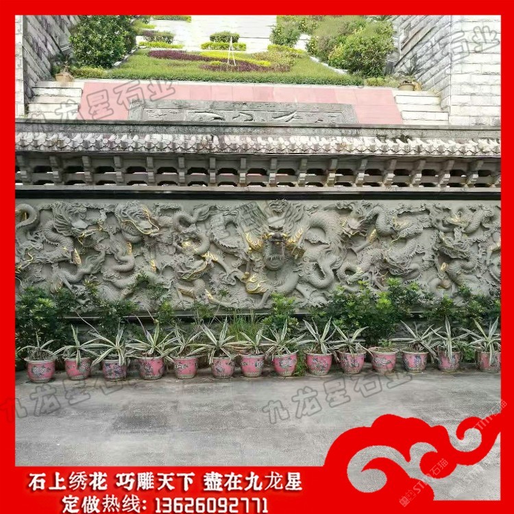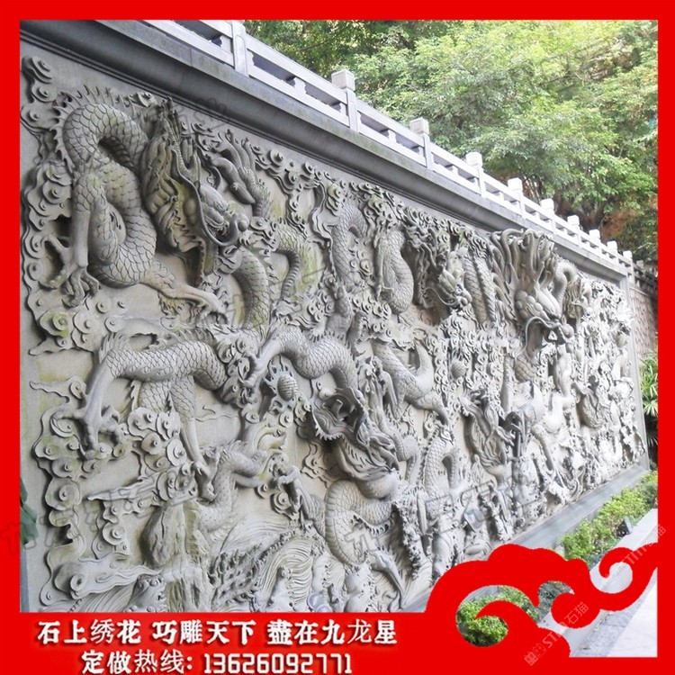 發(fā)布信息: 寺廟浮雕九龍壁 寺廟青石照壁墻圖片價格——九龍星石業(yè)。 寺院石雕照壁由來的還有很多說法,除了故事和傳說,有一些說法源于風(fēng)水,認(rèn)為照壁是中國受風(fēng)水意識影響而產(chǎn)生的一種具有特色的建筑形式,稱“影壁”或“屏風(fēng)墻”。風(fēng)水講究導(dǎo)氣,氣不能直沖廳堂或臥室,否則不吉。 寺院石雕照壁的九龍壁上面的九龍, 中間有正龍,兩邊有升龍, 、降龍之分, 每條龍都翻騰自如, 神態(tài)各異。 從青石影壁墻雕刻三段式整體角度看,整體尺度的協(xié)調(diào)、均衡及各組成部分的裝飾,都使其作為單獨(dú)空間起點(diǎn)的較好道景觀,因浮雕照壁與大門有較大關(guān)系,作為對外的門面,其裝飾處理是傳統(tǒng)建筑中其它一般墻體所無可比擬的。 寺院石雕照壁一種常見的裝飾性建筑,在住宅區(qū)或者是商業(yè)建筑上都比較常見。石材雕刻成的影壁一般來說有一定的使用年限,因?yàn)樵谟晁惋L(fēng)力的侵蝕下它的形象會受到一定的影響。如果想要石雕影壁能夠長久保持良好的色澤和形象,那么就要注意日常的保養(yǎng)。