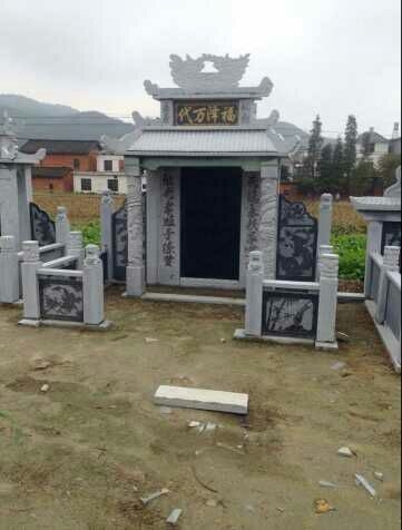 發(fā)布信息: 給大家簡單介紹一下花崗巖墓碑、高檔套墓:如圖所示,這種墓碑稱為亭子墓、民間墓、土墓,材質為花崗巖芝麻白或者芝麻灰,雕刻工藝是手工和機械雕刻相結合的方式,特別精致,把線雕和浮雕結合的非常,而且上面的花紋可以定制,一般是雕刻一些花蟲草木、龍鳳,前面左右的欄桿上面一般雕刻小獅子。當然,有些墓碑前面沒有石雕欄桿,這種墓一般叫做一字墓,相對來說比較簡單。價格方面,根據工藝的復雜成都確定,在2000—25000元不等,有興趣的朋友可以電話聯(lián)系:陶 13755222750(微信)QQ:2398142030