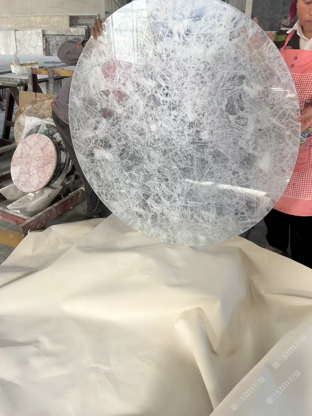 白水晶臺面定制,半寶石臺面家具