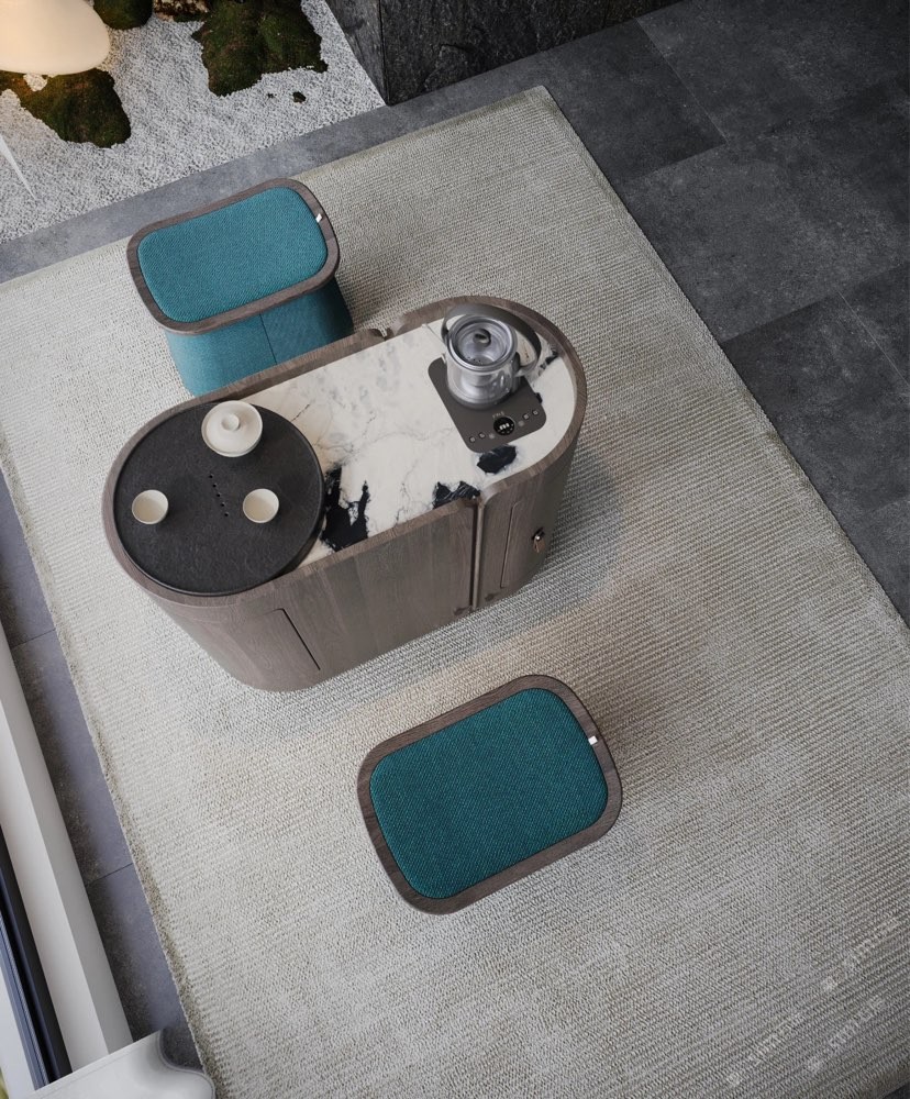 比如鑲嵌在茶桌一側,