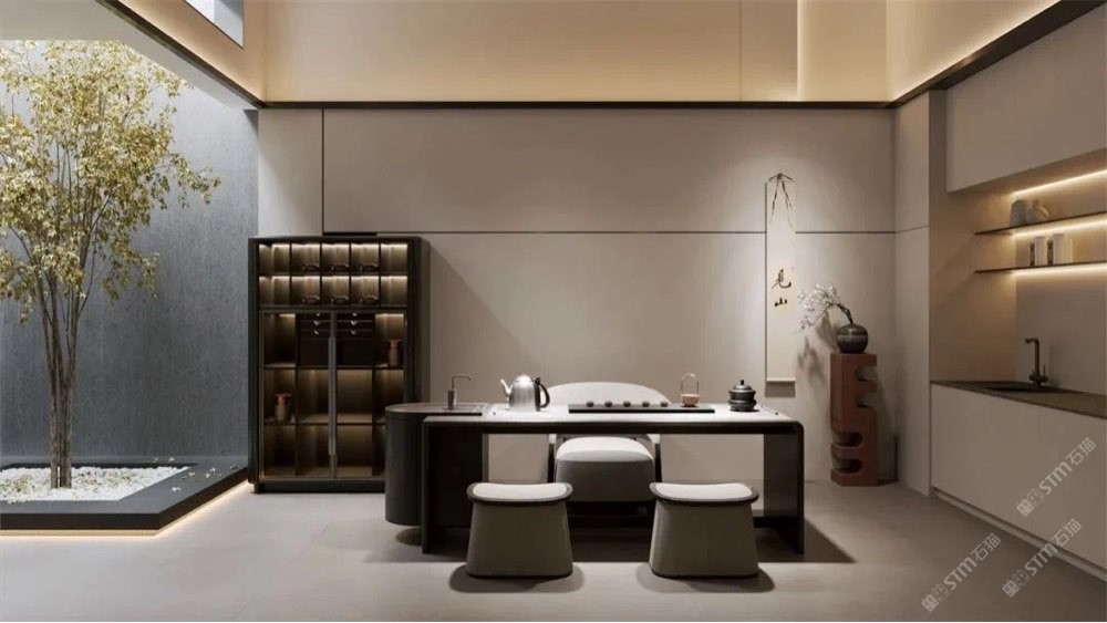 奢石與實木相互輝映,打造低調的奢華。