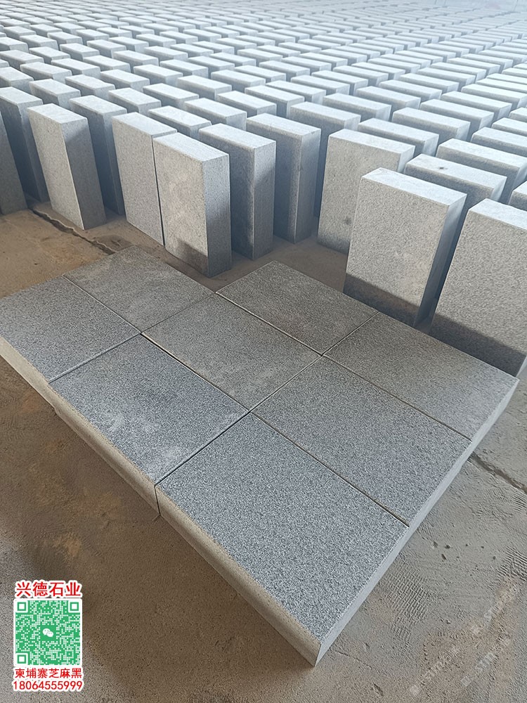 柬埔寨芝麻黑中大花火燒面G654石材新礦深灰麻石材