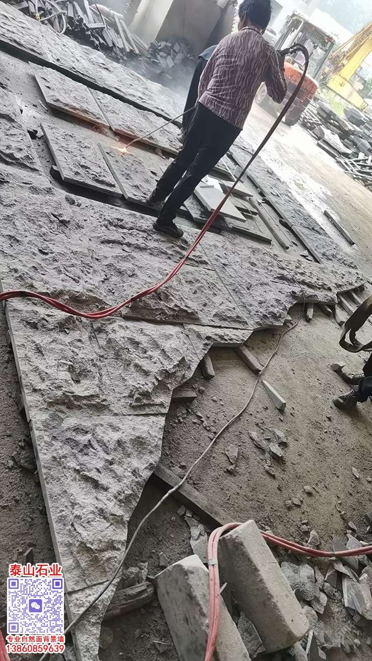 芝麻灰芝麻黑花崗巖自然面背景墻蘑菇石文化石景觀墻面