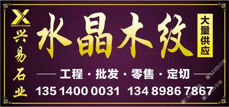 發(fā)布信息: 【興易石業(yè)】—水晶木紋專場 年末鉅惠,互惠互利 全場大板特價(jià)出售 58元起??! 我司專營水晶木紋系列產(chǎn)品:水晶木紋,啡金沙、翡翠木紋。新.白金沙.藍(lán)金沙 工程訂單-零售家裝-單件-單片均可銷售 電話:13514000031 13489867867 銷售點(diǎn): 高時(shí)物流靠近一號館大門右手路