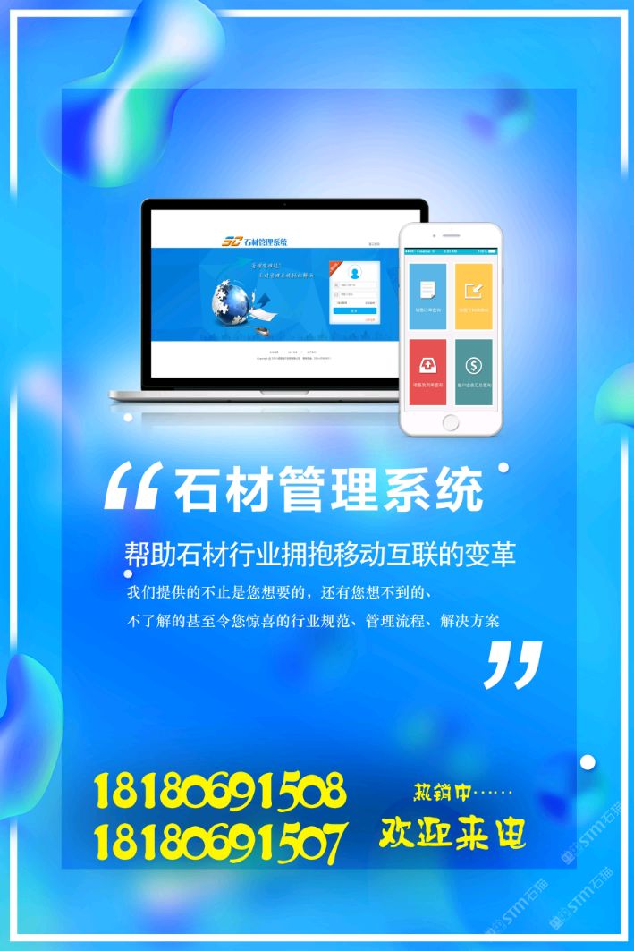 發(fā)布信息: 石材管理軟件,企業(yè)的管家。如果您還在為開(kāi)單而煩惱,還在為統(tǒng)計(jì)而煩惱,還在為沒(méi)有一套系統(tǒng)智能管理而煩惱,請(qǐng)聯(lián)系我18180691508