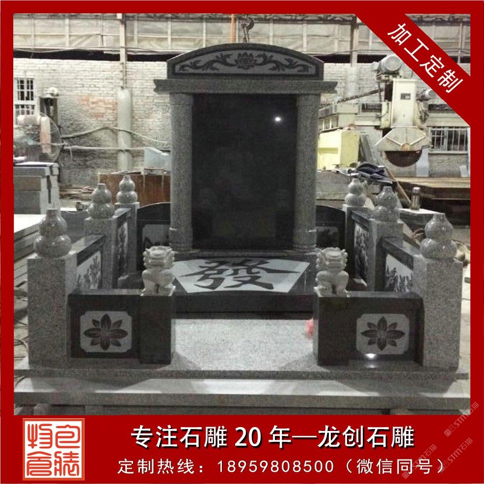 發(fā)布信息: 定制豪華墓碑 大型家族墓碑組合 請(qǐng)聯(lián)系電話(微信同號(hào)):18959808500 一座石雕墓碑的含義是它具有“留念”性含義,它是留念已去世的至親!在古代,關(guān)于尋常百姓來(lái)說(shuō),這種“留念”的方式僅僅是立一塊墓碑罷了?,F(xiàn)今,人們美學(xué)觀念的提高,對(duì)墓碑個(gè)性化藝術(shù)要求越來(lái)越高。因此,制作一座豪華氣派又兼具藝術(shù)的墓碑,只有專(zhuān)業(yè)的墓碑制作廠家才做得到!一般人是不可能獨(dú)立完成的! 福建省惠安縣龍創(chuàng)石雕工藝有限公司創(chuàng)建于2000年初。公司位于中國(guó)石雕之鄉(xiāng)——福建惠安。 我公司主要經(jīng)營(yíng)加工、銷(xiāo)售;石雕工藝品、石材制品;定制墓碑,水缽,花缽,欄桿,佛像等等。承接家族墓園工程;承接建筑幕墻工程、承接寺廟古建工程、園林古建工程設(shè)計(jì)與施工。