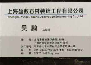 上海盈敘石材裝飾有限公司主營產(chǎn)品:法國米黃3,奧特曼,白玉蘭,沉香米黃,金蜘蛛,希臘白木紋1,土耳其灰,黃金麻淺黃,湖北白麻,富貴紅1,藍色妖姬企業(yè)地址:上海青浦區(qū)華新鎮(zhèn)華丹路28A座