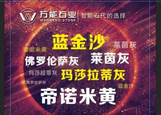 萬能(新萬益)石業(yè)主營(yíng)產(chǎn)品:帝諾米黃,意大利藍(lán)金沙,意大利白金沙,藍(lán)金沙,白金沙,普京木紋(淺),藍(lán)金沙20,意大利藍(lán)金沙2,藍(lán)金沙(直紋),藍(lán)金沙9企業(yè)地址:福建泉州南安市水頭鎮(zhèn)中閩大理石666區(qū)
