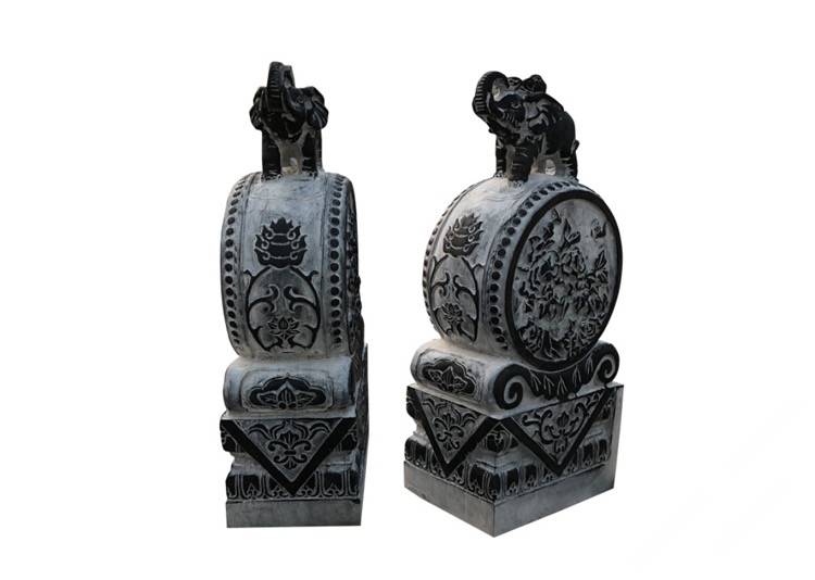 描述:抱鼓石是漢族傳統(tǒng)民居,特別是四合院的大門底部位于宅門入口、形似圓鼓的兩塊人工雕琢的石制構(gòu)件,屬于門枕石的一種,因?yàn)樗幸粋€(gè)猶如抱鼓的形態(tài)承托于石座之上,故此得名。抱鼓石是禮制建筑等級(jí)的符號(hào)象征,也是"非貴即富"的門第符號(hào),抱鼓石絕不脫離它主人背后的政治、經(jīng)濟(jì)基礎(chǔ)而獨(dú)立存在。抱鼓石漢族民間稱謂較多,如:石鼓、門鼓、圓鼓子、石鏍鼓、石鏡等等。抱鼓石與門簪因?yàn)樵谡T門面上下遙相呼應(yīng),在漢族民間有所謂的"門當(dāng)戶對(duì)"之說。